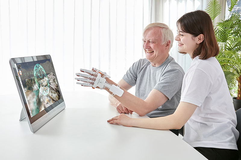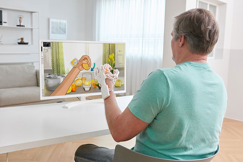 Mit spielerischen Übungen wie „Orange auspressen“ oder „Tischtennis“ trainieren Klient:innen ihre Beweglichkeit, während Fortschritte automatisch aufgezeichnet werden. Erfolge werden sichtbar, motivieren zum Weitertrainieren und machen die Therapie zugleich unterhaltsam. Dank seines geringen Gewichts ist der Smart Glove ideal für den mobilen Einsatz im Hausbesuch sowie für das selbstständige Training zu Hause.